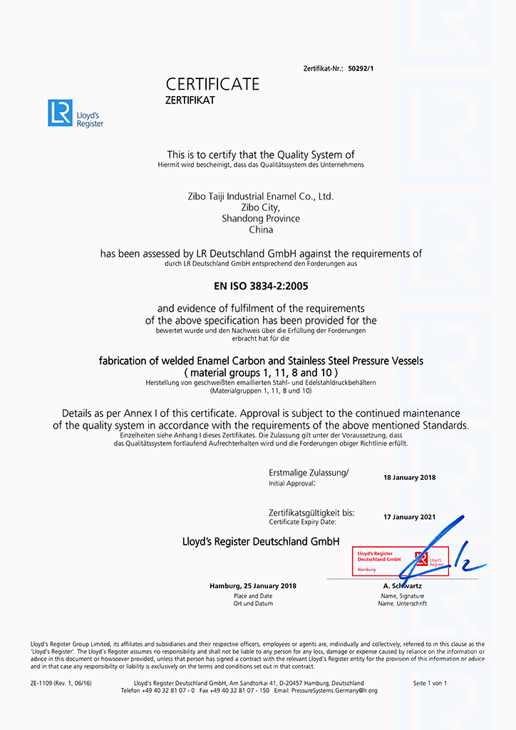 淄博太極工業(yè)搪瓷有限公司專業(yè)制造搪玻璃設(shè)備、氟塑料設(shè)備及碳鋼、不銹鋼壓力容器的大型企業(yè)。現(xiàn)有員工1000余人,注冊資金11900萬元,占地600畝,生產(chǎn)車間19萬平米,凈資產(chǎn)超20億元。太極以人為本,單用于職工的居住生活投入已達3億,使工者有其房,家人生活及孩子....[查看更多]